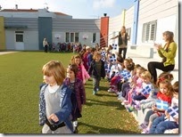 Τα μελισσάκια και αστεράκια του Παιδικού Σταθμού «Le Petit La Salle» έκαναν την πρώτη τους παρέλαση κουνώντας τα σημαιάκια τους. Στη συνέχεια, πήραν τη θέση τους στις κερκίδες για να παρακολουθήσουν την παρέλαση των μαθητών του Νηπιαγωγείου. Όλοι μαζί, στο τέλος, μικροί και μικρότεροι, φώναξαν «Ζήτω η Ελλάδα».